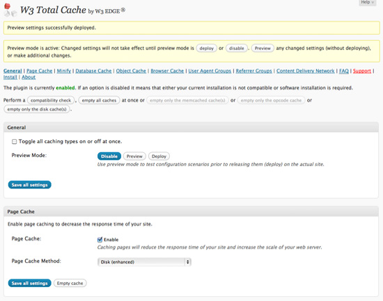 W3 Total Cache ми е любимия плъгин когато говорим за кеширане на страници. Някои колеги твърдят че при използването му блога се зарежда 10 пъти по-бързо.