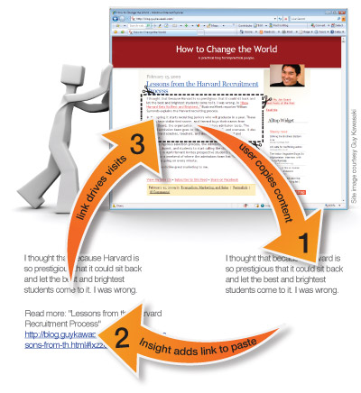 Всеки път, когато един потребител копира съдържание от сайт Ви и го публикува в имейл, блог или уеб сайт, Tynt автоматично добавя един линк обратно към оригиналният първоизточник. Когато някой кликне, върху URL, ще са насочи към вашия сайт и ще види оригиналното съдържание.